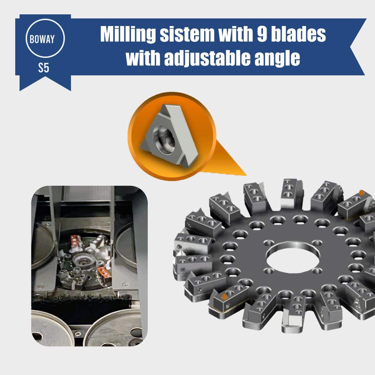 Milling sistem with 9 blades with adjustable angles