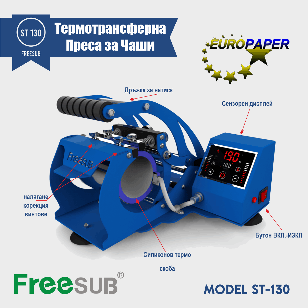 FREESUB ST 130 Термотрансферна Преса за Чаши