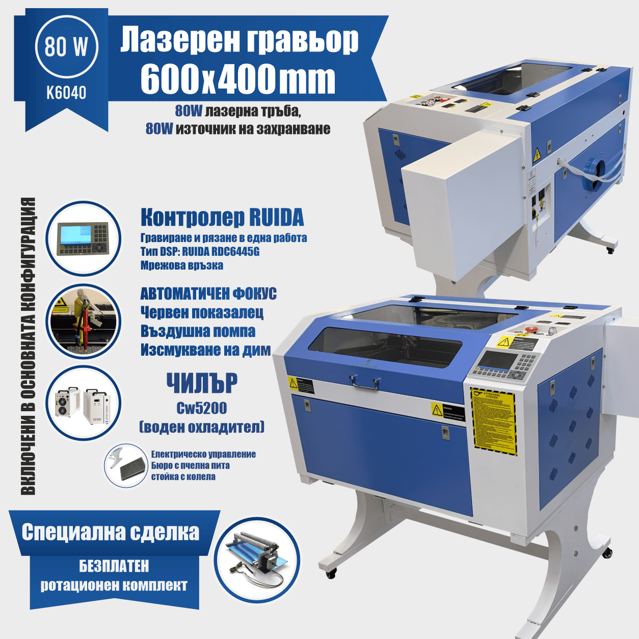 ЛАЗЕРЕН ГРАВИР K6040 80W – RUIDA controler
