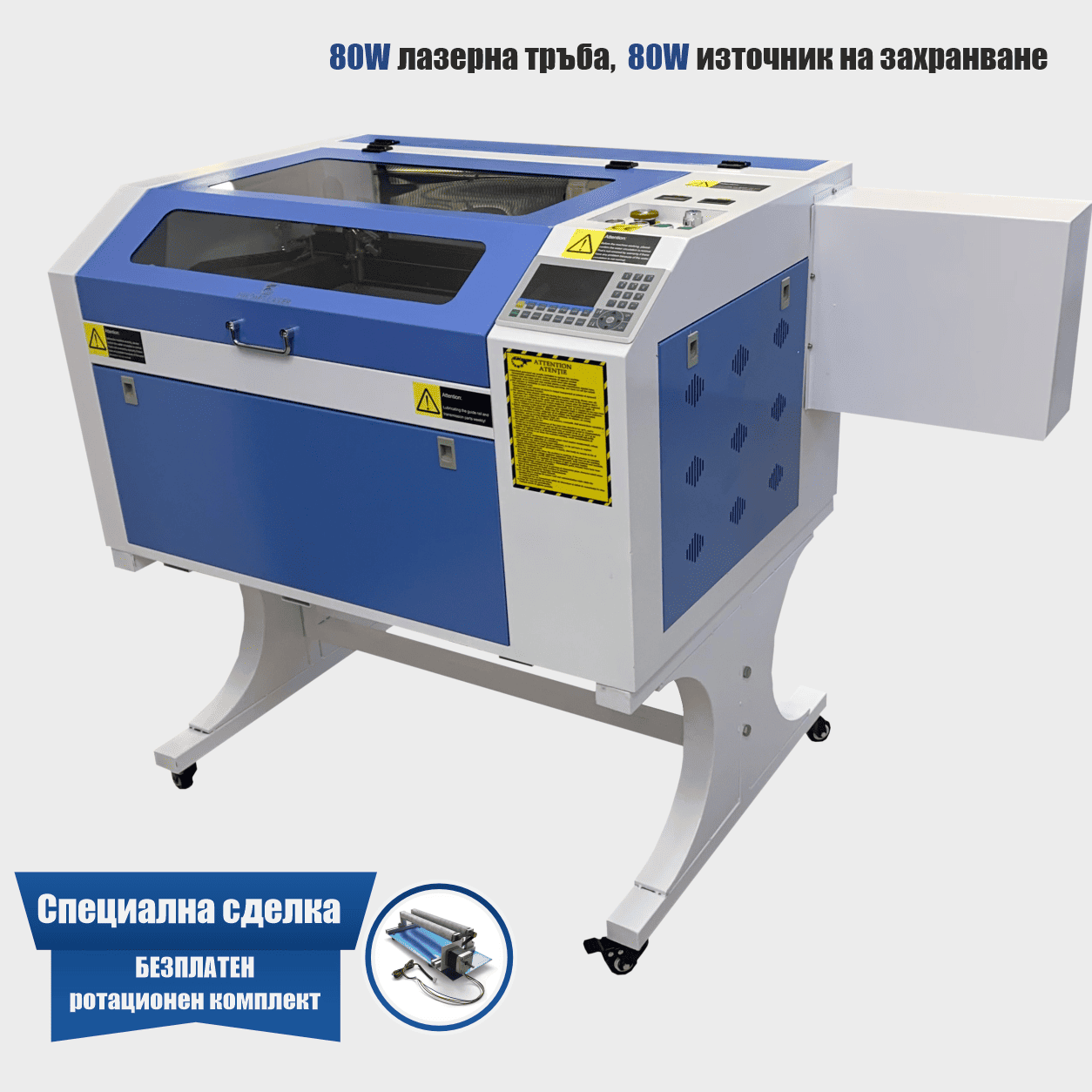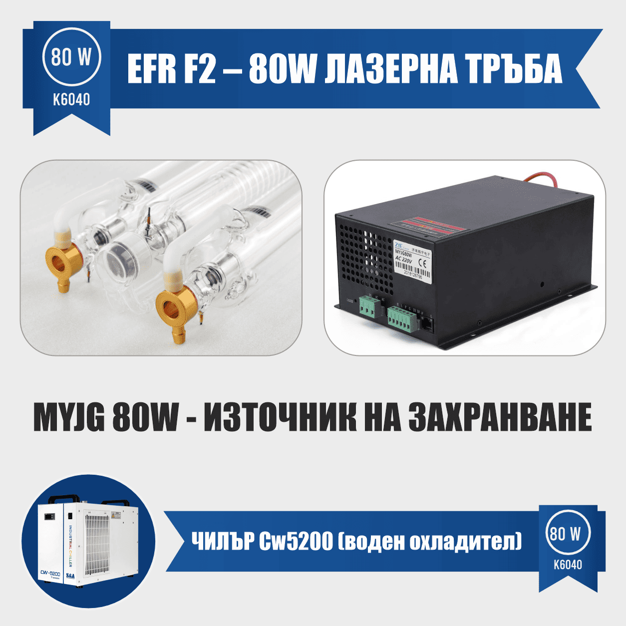 Лазерна тръба: 80 W (вече инсталирана)